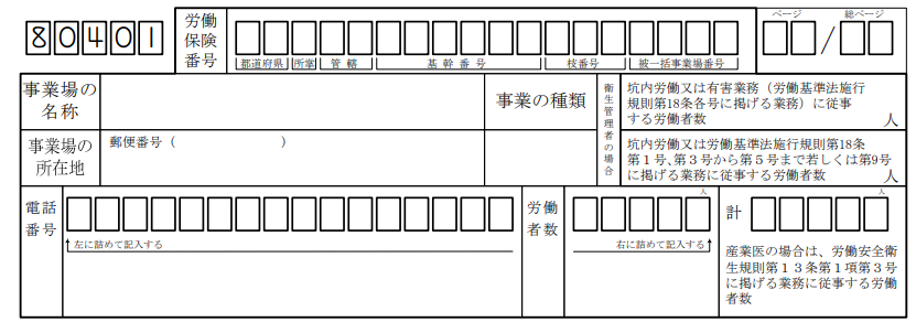なお、2枚目以降は、「事業場の名称・所在地・電話番号」「事業の種類」「労働者数・計」の記入は不要です。