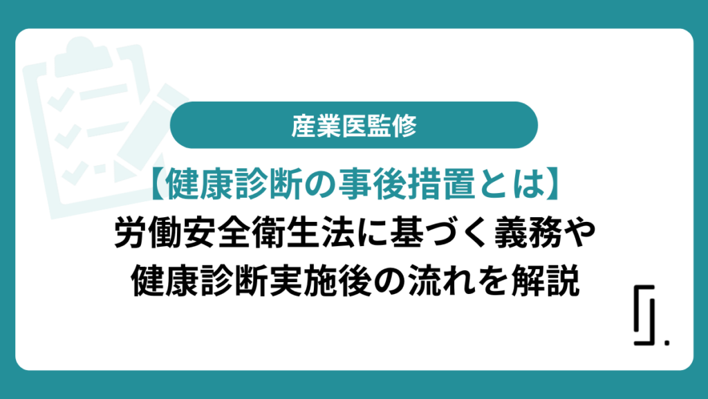 今回は、法令で定められている事後措置だけでなく、健康診断結果の通知や医師等の意見聴取、有所見者への再検査・精密検査の受診勧奨、就業上の措置の検討、保健指導、労働基準監督署への報告など、健康診断実施後に必要な一連の対応について解説します。