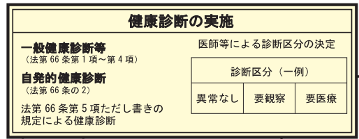 まず、法令に基づく一般健康診断を実施し、医師等による診断区分の判定を受けましょう。